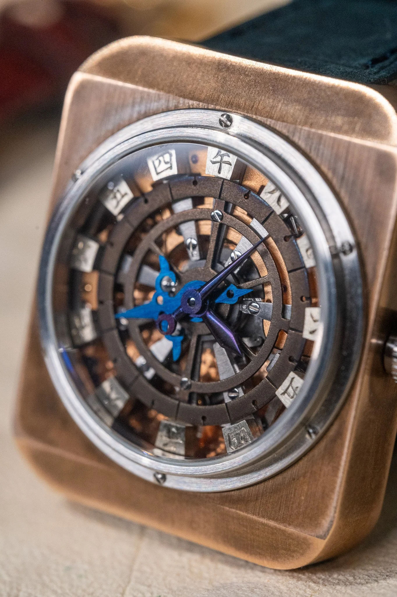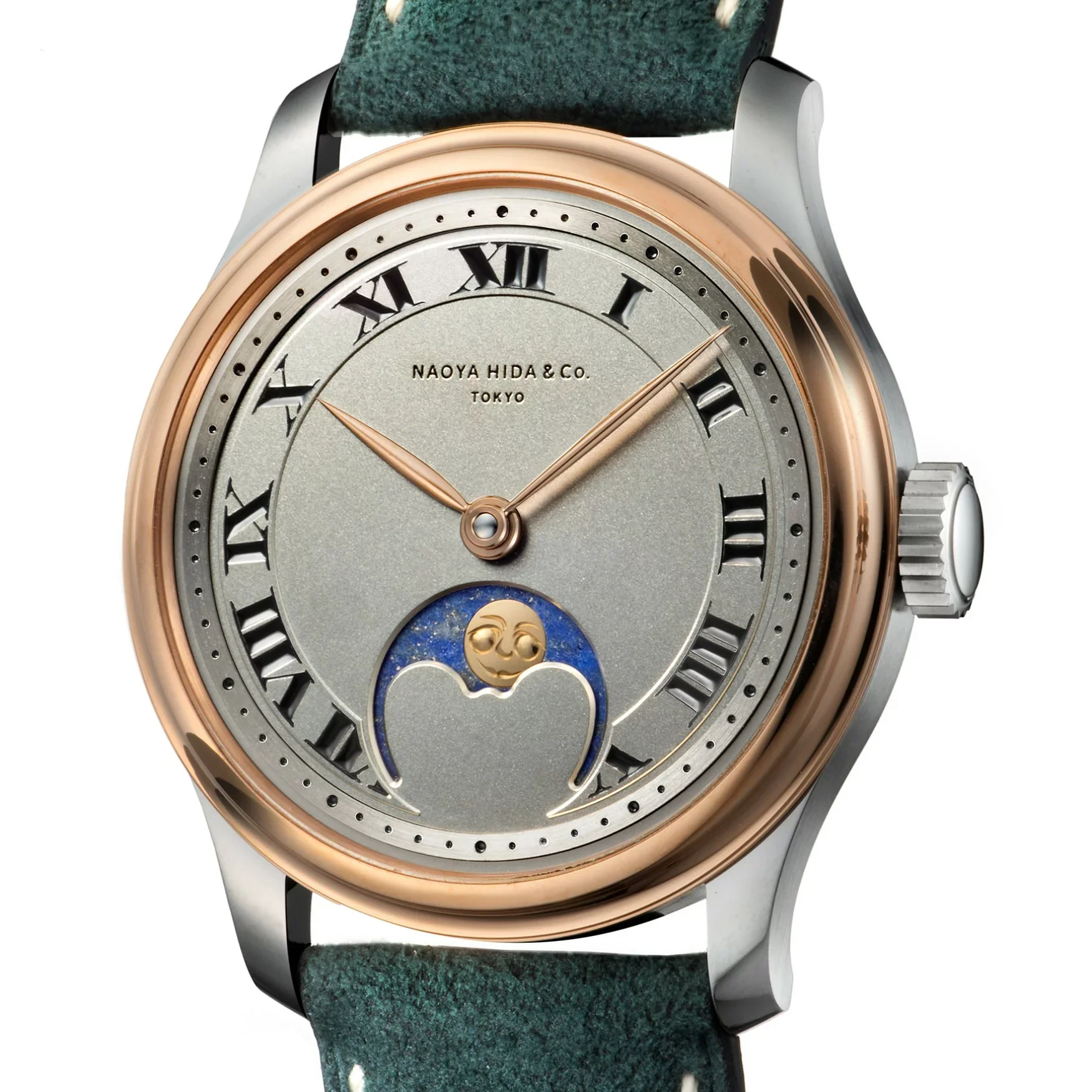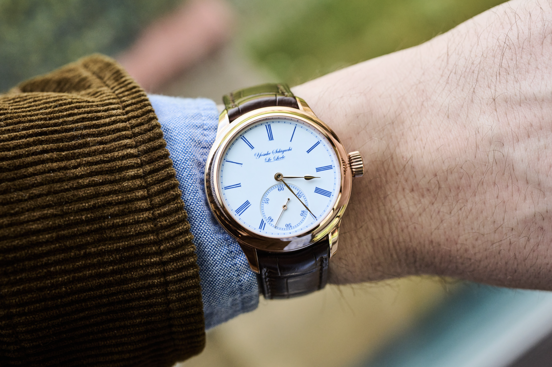 La version personnelle de Masahiro Kikuno, qu’on pourrait qualifier “de poche”. Il s’agit d’un inrō, un petit boitier traditionnel utilisé à l’époque Edo pour transporter médicaments, sceaux, herbes et petits objets à sa ceinture (et non pas dans la manche du kimono comme je le disais). Le tout est maintenu par un petit contre-poids appelé netsuke (ici le petit personnage en bois). Crédit Watches by SJX